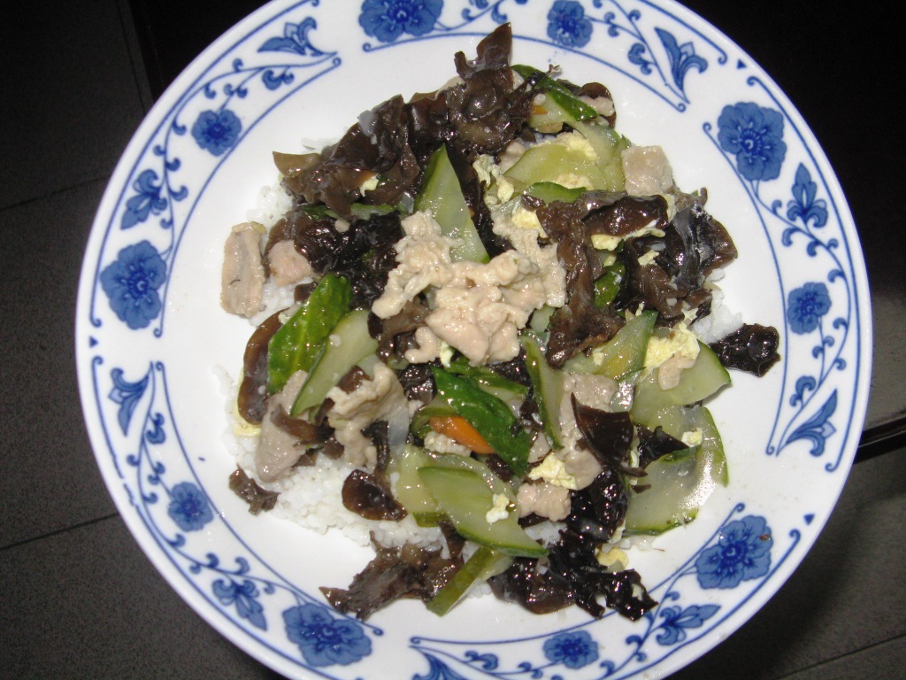 This one came from the canteen. It consists of a fungus, zucchini/cucumber, a slither of carrot and what passes for a large amount of chicken in these parts. I like it apart from the over salting. Despite its appearance I’ve taken to the fungus and even bought some to include in my occasional cooking.