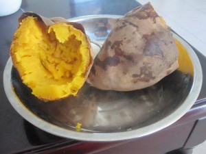 A roast sweet potato from a street vendor. It was very tasty.