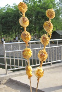 These quail egg kebabs were dusted with spices and tasted delicious. I’ve only ever seen them twice in China.