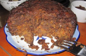 This is the plum pudding which was cooked by one of the foreign teachers and which we ate on Christmas night. It tasted pretty good and was served with custard.