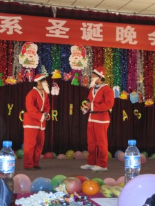 Same day, another party. This time it was the English Department at the college which put on a Christmas concert. Two students dressed as Santas and doing an item.