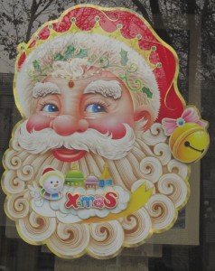This is fairly typical of the Santa signs on windows around town. The trees were plastic and unimpressive.