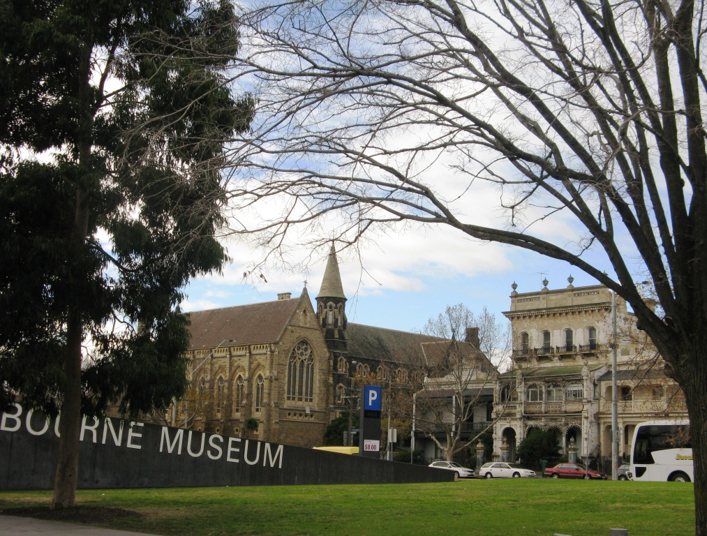 Building/Melbourne Museum stop, walking across Carlton Park and through the