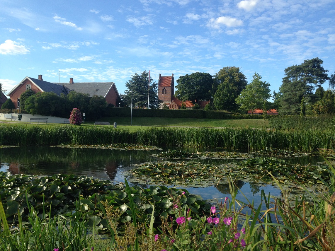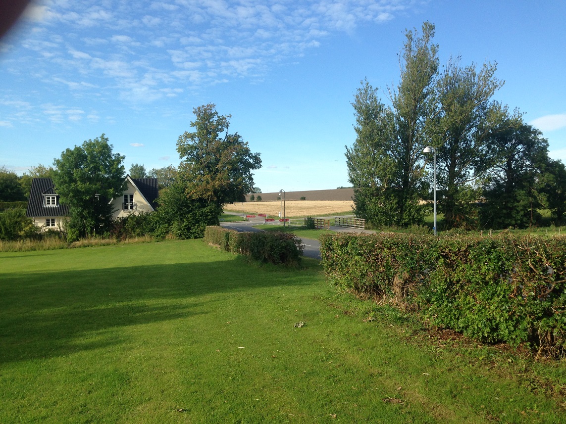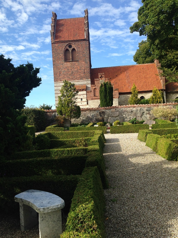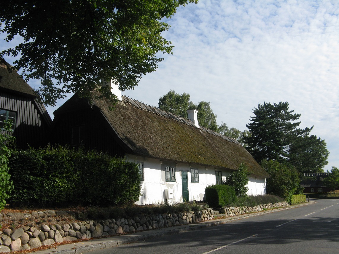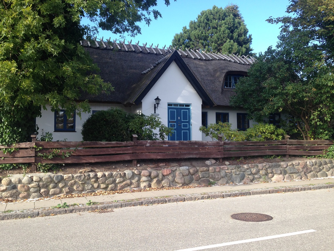 The village of Vallensbaek was reached through more rich greenery and countryside. It’s a very pretty village with swathes of green grass, a village pond with resident ducks, neat tidy houses some of which were thatched and an ancient church and churchyard now with a modern round glass church alongside it.
