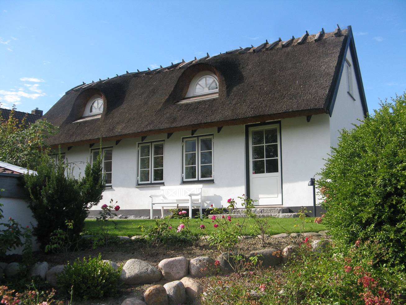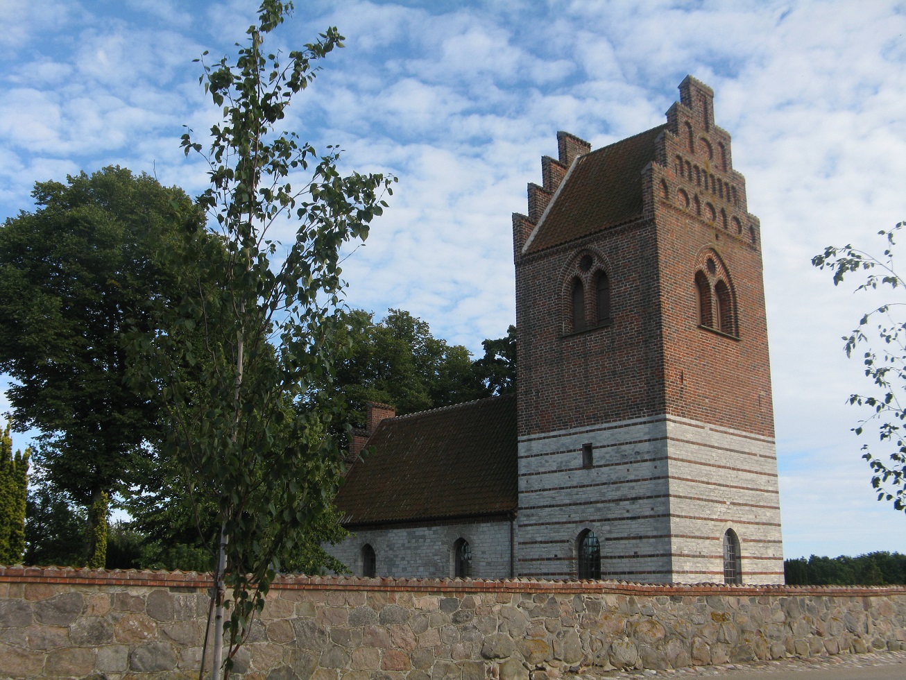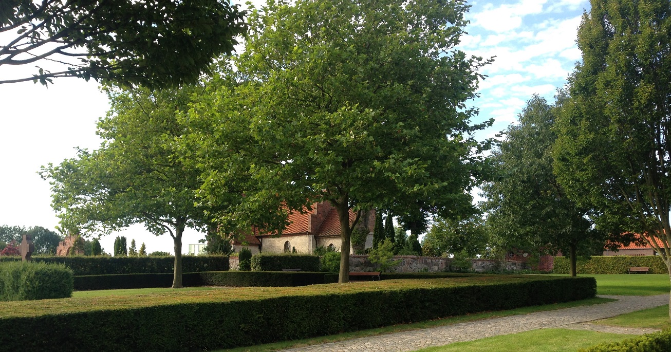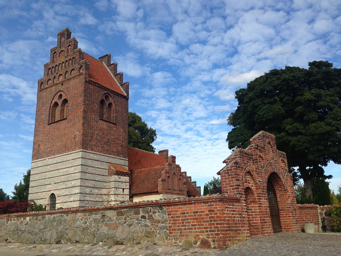 The village of Vallensbaek was reached through more rich greenery and countryside. It’s a very pretty village with swathes of green grass, a village pond with resident ducks, neat tidy houses some of which were thatched and an ancient church and churchyard now with a modern round glass church alongside it.