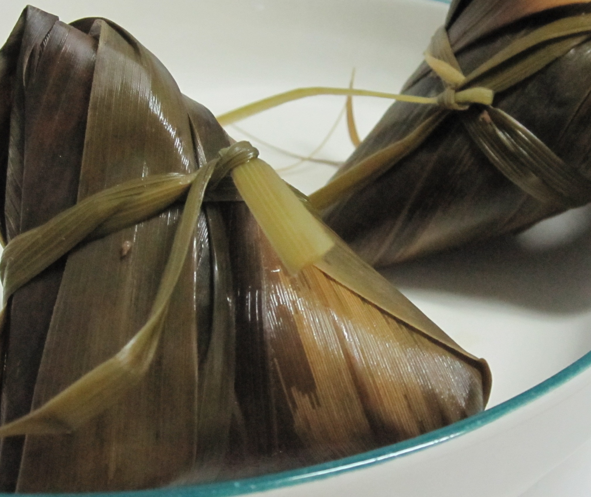 I bought a couple of zhongzi from a woman in the street near the college on Monday. When I photographed them I discovered that one had a tiny hitchhiker. It is just under the tie in the middle of the one on the left.
