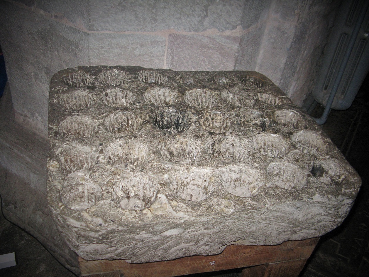 Cresset stone which contained candles used by the monks during their devotions in the hours of darkness. This is the only one known of in Wales.
