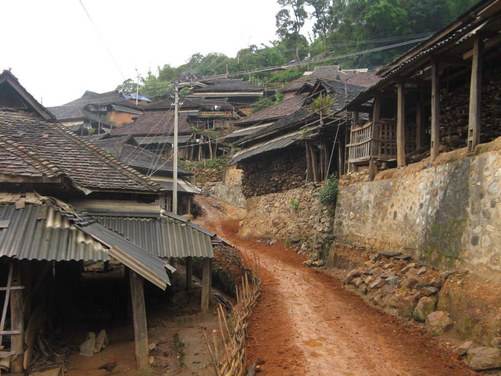A village owned by the Bulang people is much more higgley piggley in its setting out without the shaded lanes and vegetation which is around the Dai village. It’s also on a slope too.