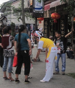 This sheep is a photo opportunity for a price. It’s the only sheep I’ve seen in China and its fleece is unusual to say the least. Look under its stomach to see something even more unusual. I’ve seen more than sheep urine in the streets of China, but Dali must have restrictions.
