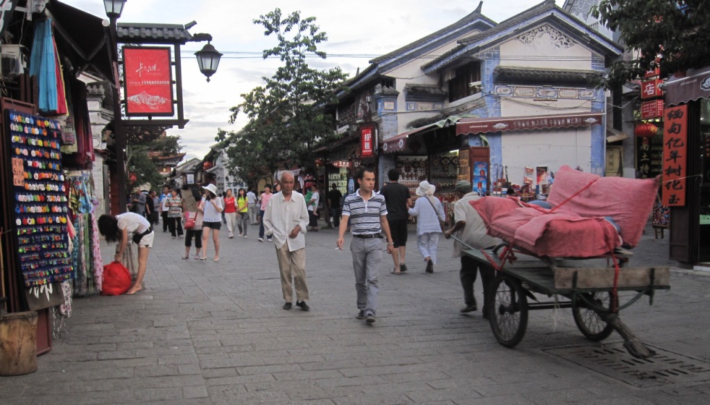As in Lijiang, local shopkeepers are required to wear ethnic dress, even if it’s only a vest.