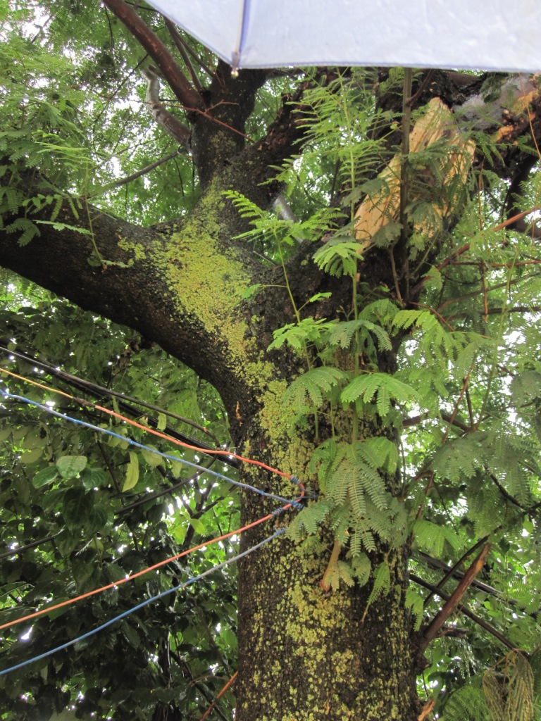 This tree was photographed in Shaping where I had trouble getting any decent photos of people because of the rain, rather than lack of interesting opportunities. It and the trees around it had lots of lichen. It is not the first tree I’ve seen doubling as a power pole.