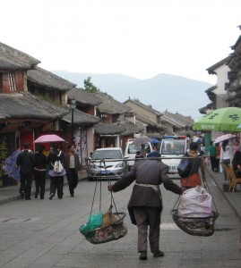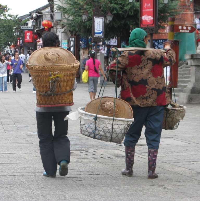 It is still quite common in many parts of China to see people carrying items using the pole over the shoulder method.