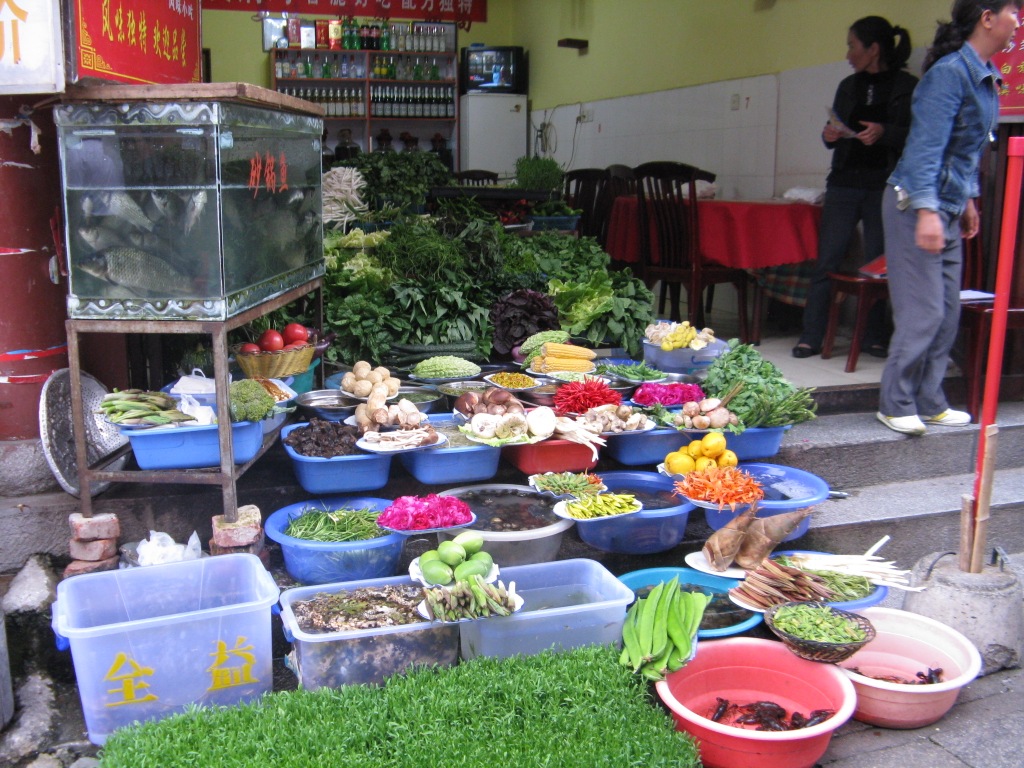 Many of the restaurants have their ingredient options; plant and animal, alive and dead, laid out at the entrance and you choose what you want.