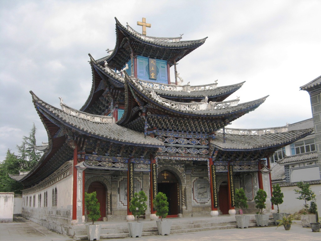 This is the Catholic Church in Dali. It was built in 1929. According to the blub inside the church it is responsible for about 80,000 catholics, covers an incredible territory and has next to no priests. There is some sort of new seminary attached to it.