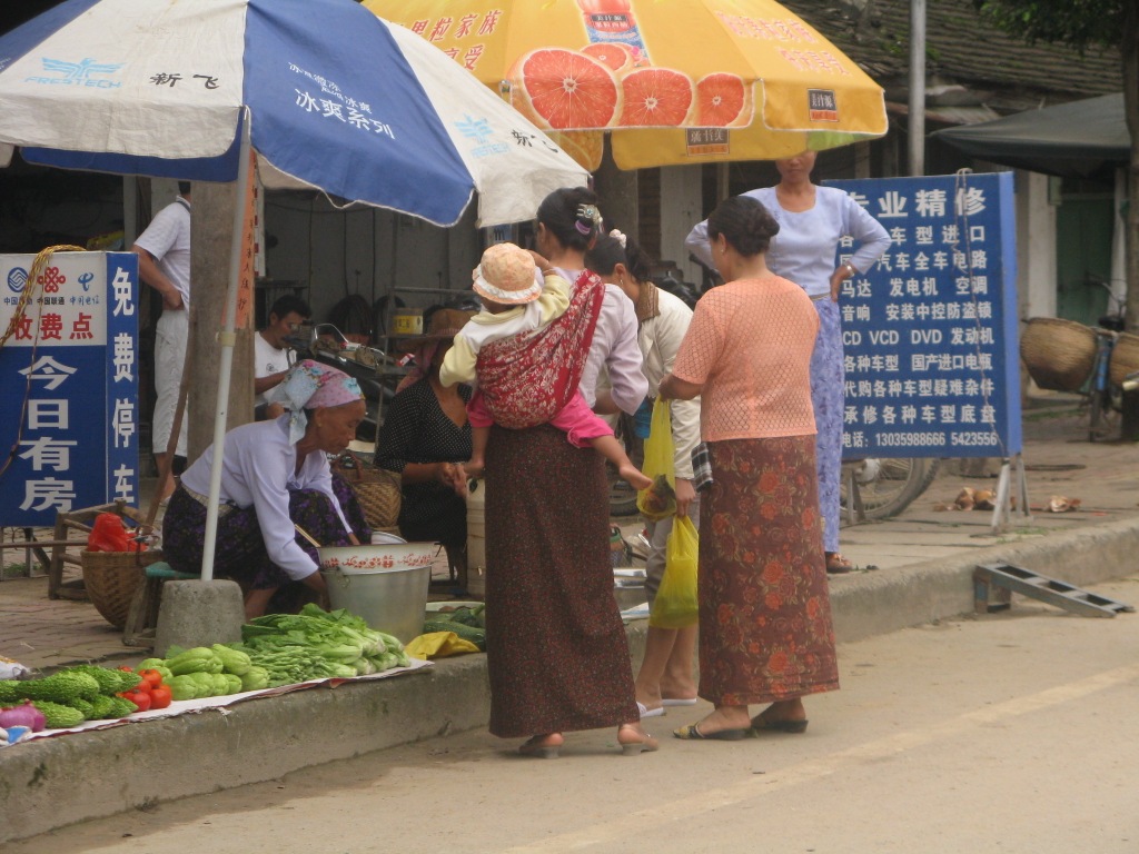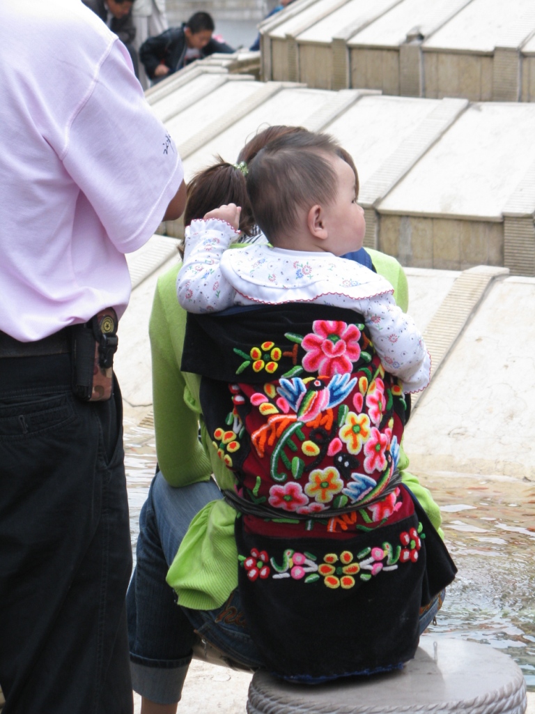 Two for one, these two were in Kunming. One is carrying a baby in her arms and the other on her back which is very common in Yunnan. The usual difference is the embroidery or embroidery style on the baby carrier.