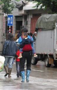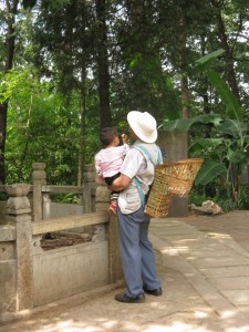 A man doing baby carrying duties. I did see a couple. I saw a statement in Mosuo area stating that baby minding was a man’s job. This photo came from southern Yunnan wheras the Mosuo are predominatly in northern Yunnan.