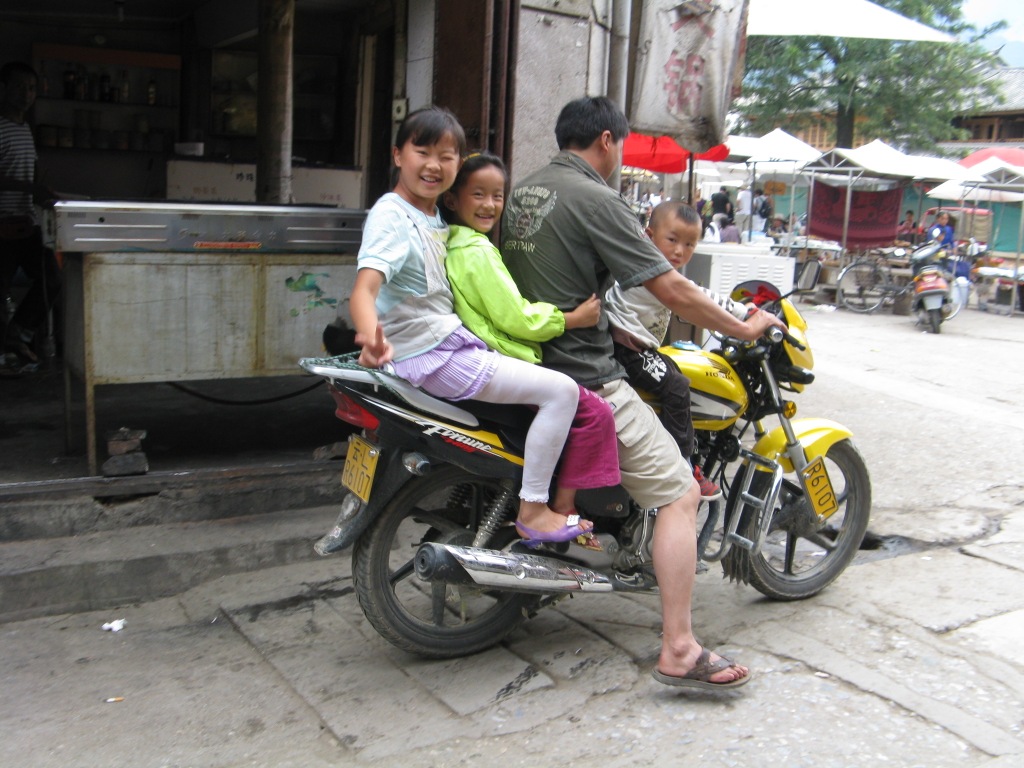 Four on a bike in Xihou, a village outside Dali. This is not uncommon. I’ve even seen it on much smaller bikes.
