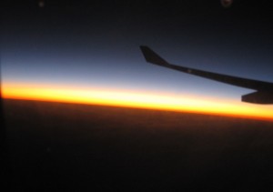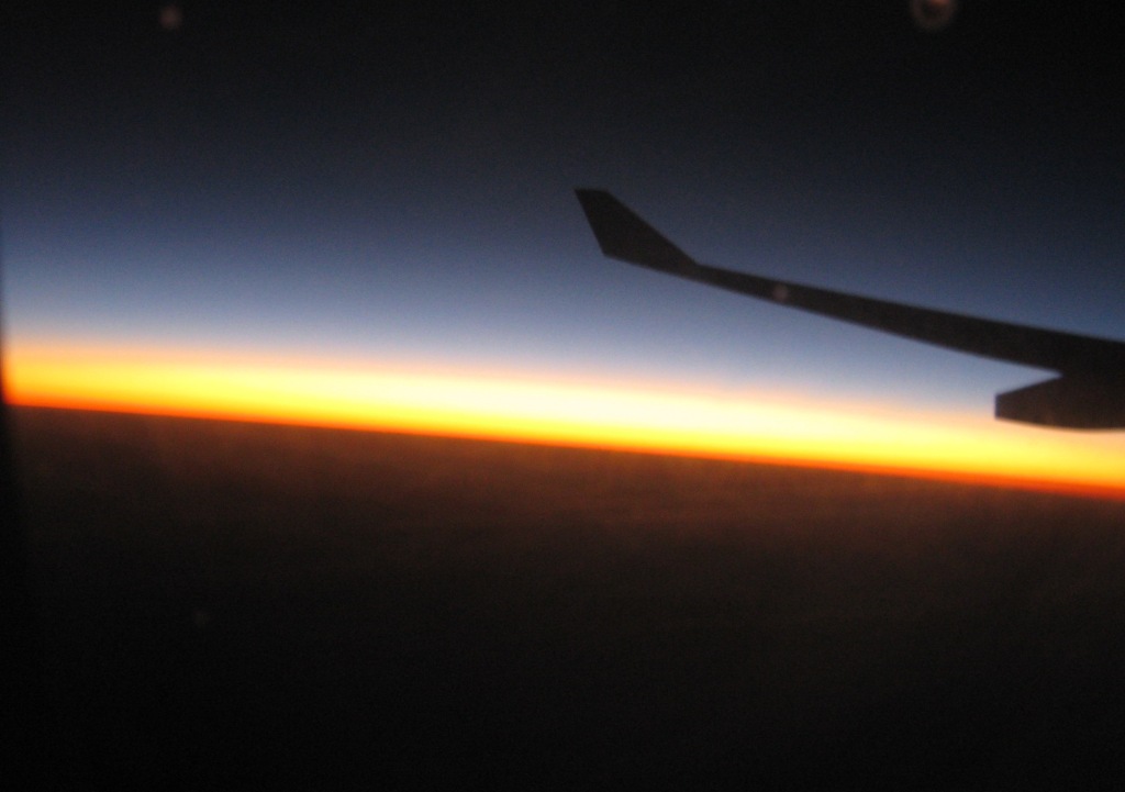 I was on the wrong side of the plane for the sunrise but, fortunately my neighbour alerted me to it so I had a quick look through another passenger’s window and snapped this photo.