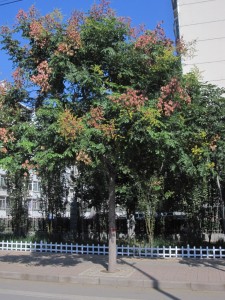 This tree is one of many along the road and opposite the bus stop outside the college entrance. The ?flowers are quite striking when seen in the right light. I was too busy concentrating on photography and didn’t see the bus approach until it was too late. The drivers will never stop unless you are right at the bus stop; a metre or two away doesn’t count so instead of having the perfect connection between two buses I had to wait 15 minutes.