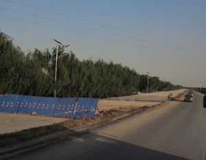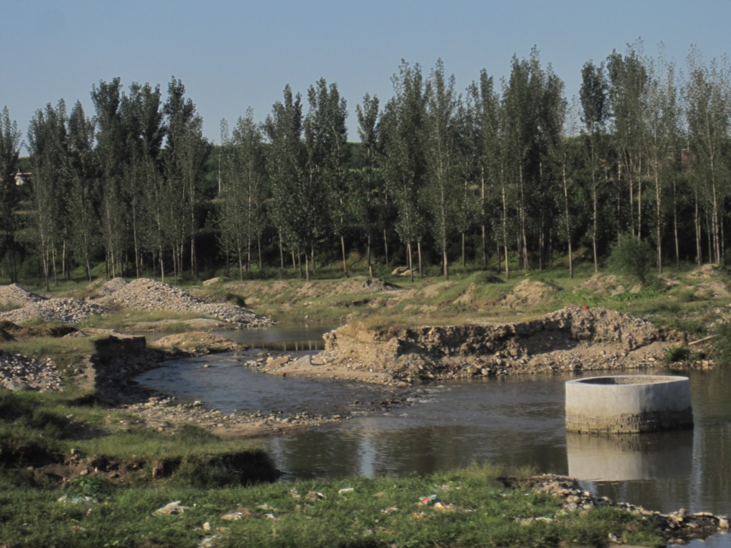 This is the route we took to see the reservoir and I wanted to see what else was to be seen. It headed due north and made few deviations. I was on the wrong side of the bus at the wrong time of the day to photograph any of the orchards. It travelled past dusty, scruffy rural villages, an almost dry river, near a couple of small hills and after around 45 minutes reached its terminus in a village and turned around. Its route too was mainly rural apart from the growing apartment blocks on the city outskirts.