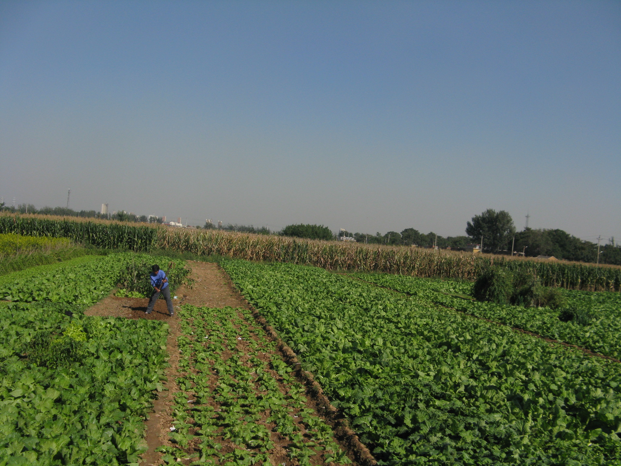 Vegetables, corn and a farmer