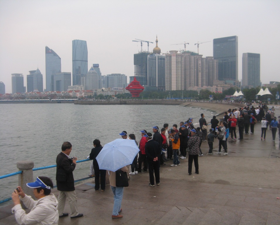 The sky was lightening and we travelled to Qingdao’s waterfront and the site of the May 4 Monument. It represents the May 4 Movement of 1919. China was weak during the 19th century resulting in numerous foreign governments gaining territory within its borders. Shandong had gone to the Germans which lost it to the Japanese. The Treaty of Versailles in 1919 failed to return it to China which had aided the allies during the First World War with the provision of 140,000 labourers in France. The Movement sparked widespread dissatisfaction amongst intellectuals, workers and peasants. The results were limited but the significance was in that it was the first time that the three groups had collaborated.