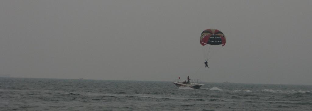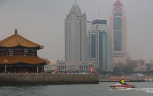 Huilan and cityscape. A ride in a speedboat is an optional seaside activity.