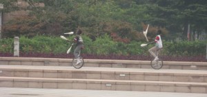 There was a European circus visiting and located in the park. These kids just appeared practising balance skills.