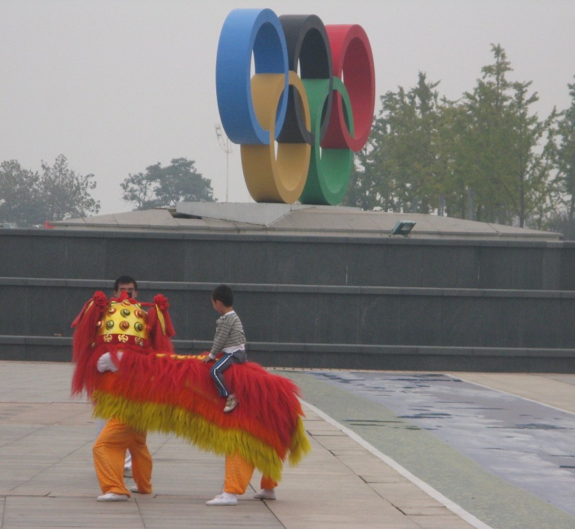 There had been lion dancers and a band hanging around the park and eventually they got moving to the extent that the kid got a ride.