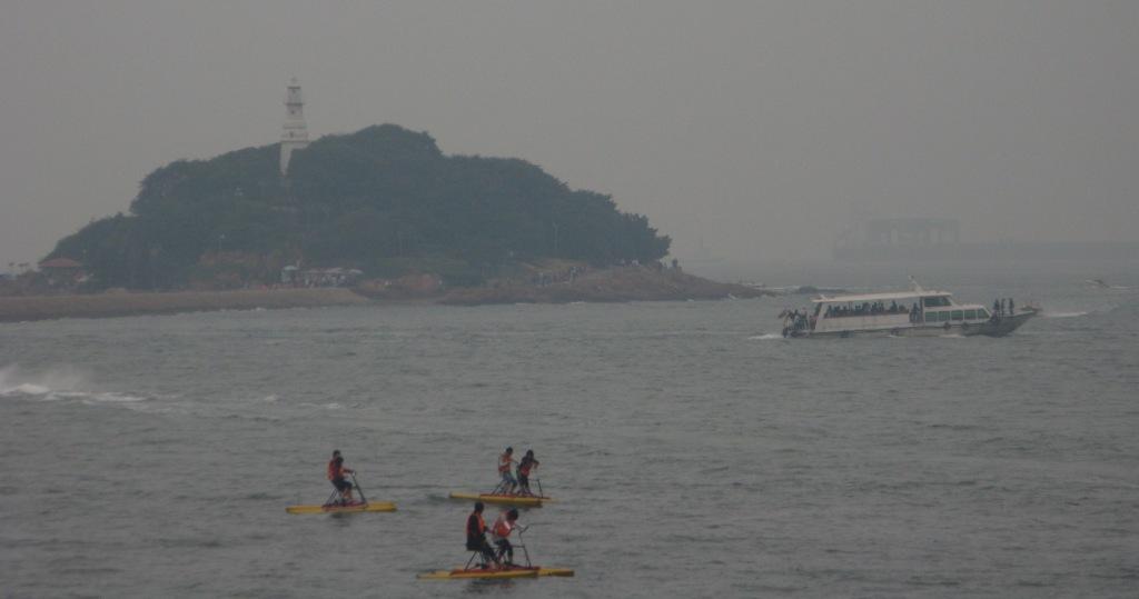 We had about an hour to wander the waterfront. Unlike normal Chinese tour groups we had neither coloured hats nor leader to follow around. She took us to our destinations, told us when to return and left us to our own devices. Our next destination was another part of the waterfront where we embarked on small boats for a half an hour run along the coast. The sun was well hidden by thick cloud.