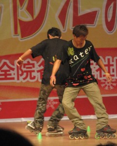 There was one girl among about a dozen boys in the skating program. It was obvious that they had personalised black T shirts and chosen to write “skater” in English rather than Chinese.
