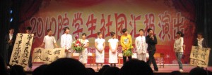 From what I can understand, the concert was put on to inform new students of extra-curricular activities available to them. It had the usual four hosts in their rented finery. Singers, dancers, kung fu proponents and a short skit were part of the usual offering for college concerts.