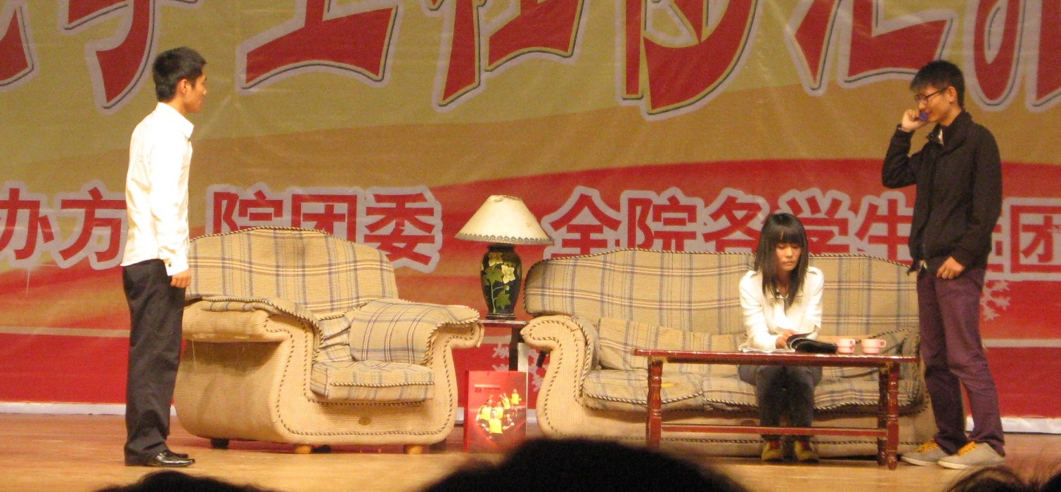 The scene and actors in the skit. There was an audible ohhhhhhhhhhhhh from the audience when the lounge chairs were brought onto the stage before it started.