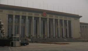 This is the great Hall of the People, the Chinese equivalent of a parliament building. It is on the western side of Tiananmen Square.