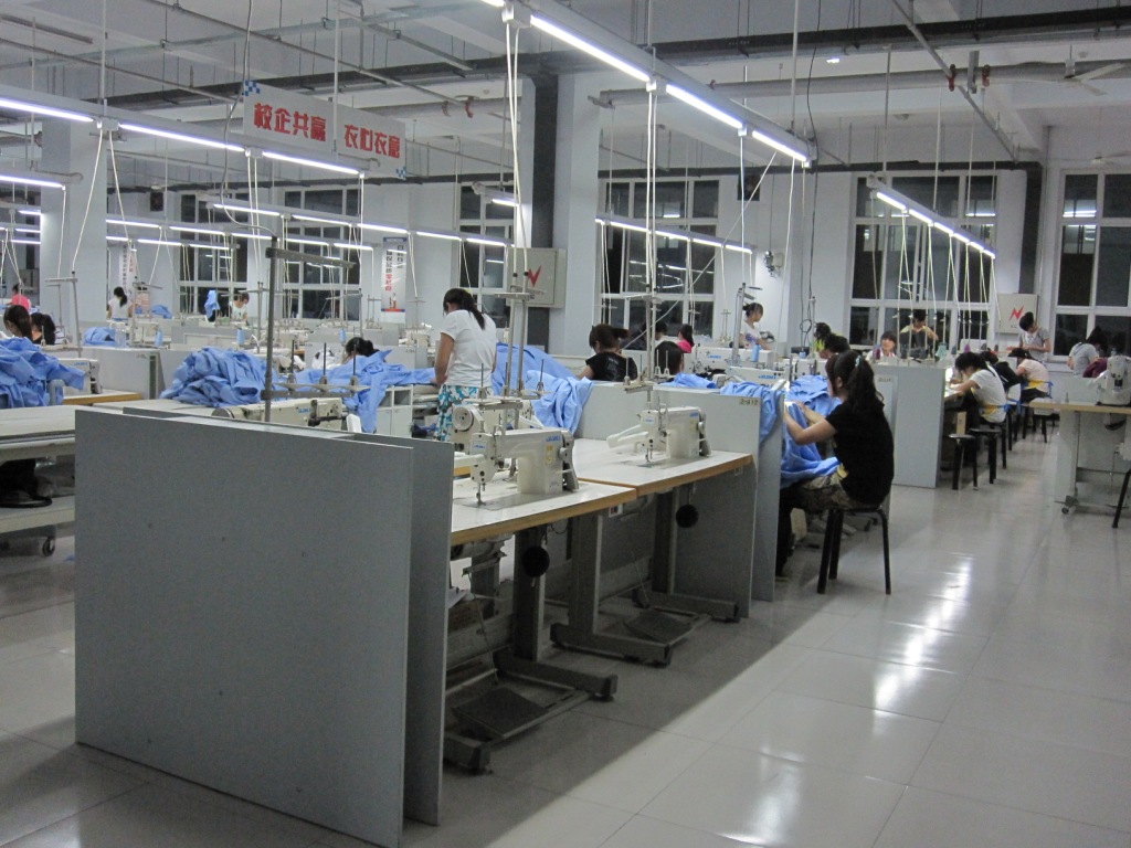 Anyway it was a unique experience and I was lucky to have it. Everyone left immediately it was over. I was given a tour of the building and received more surprises. Among other things there were vast rooms inhabited by students in garment factory environments. Students were sewing or ironing. It was obvious that several different garments were in various stages of construction. No one appeared to working up a sweat over the work apart from one girl who was installing buttons on shirts with great rapidity while talking on her phone via a microphone. A softly softly approach to work is typical of what I have seen when I have been out and about.